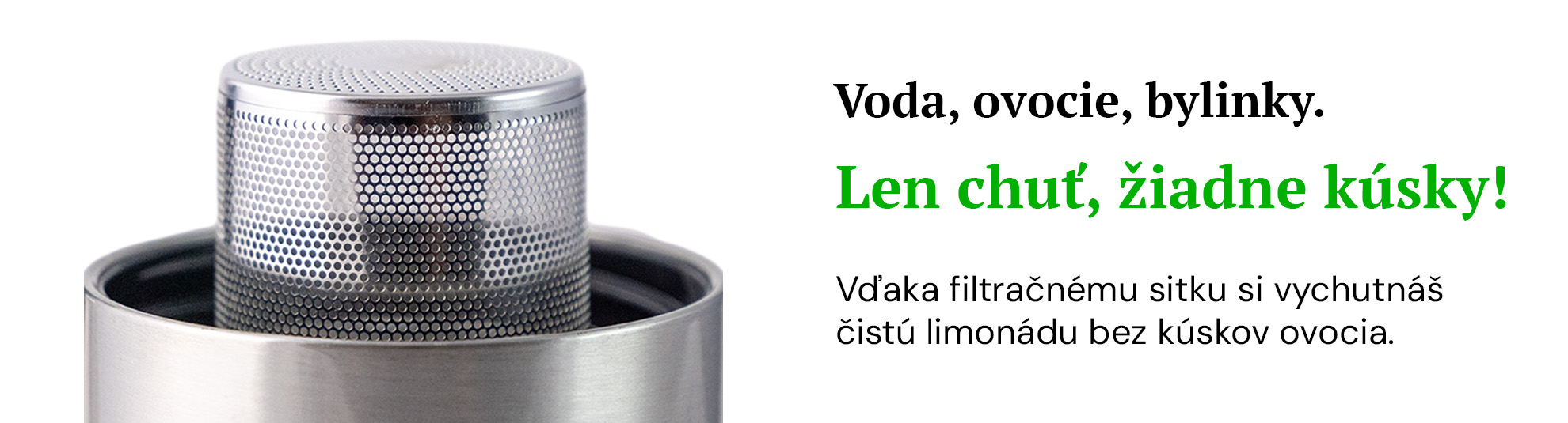 Naše fľaše sú ideálne na vodu s ovocím, bylinkami či ľadom. Vďaka praktickému sitku zostane každé sústo tam, kde má a vy si môžete naplno vychutnať zdravý drink počas dňa.