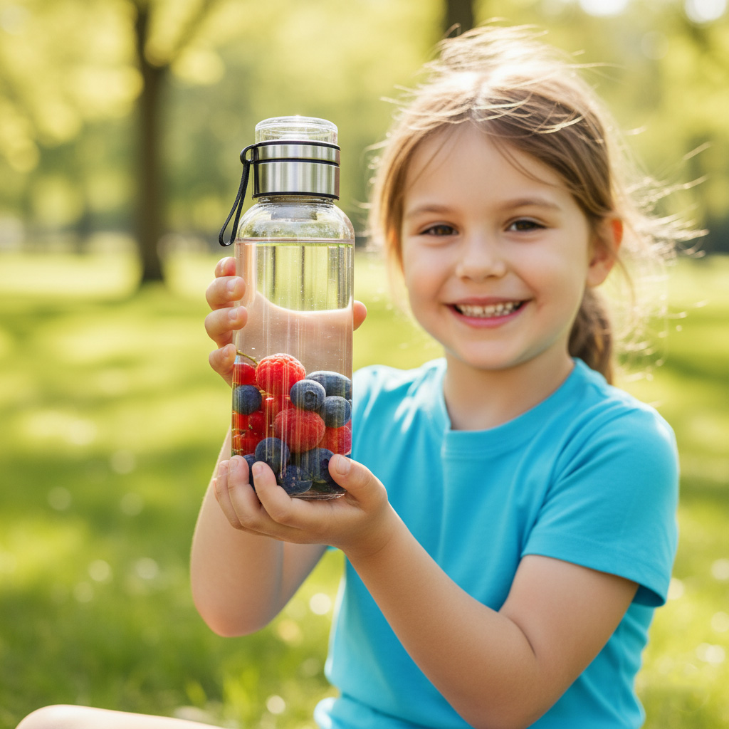 Urobte z plnenia rituál: Každý večer naplňte fľašu z vodovodu spoločne. Pridajte ovocie, bylinky alebo kvapku citróna. Dieťa uvidí, že voda z vodovodu je chutná a zdravá.