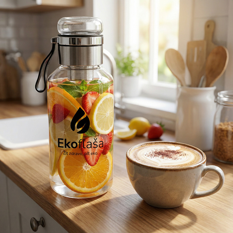 Najjednoduchší upgrade je mať vodu stále pri sebe. Sklo nemení chuť a sitko je top na citrón, mätu a všetky tie malé triky, vďaka ktorým sa voda pije sama.